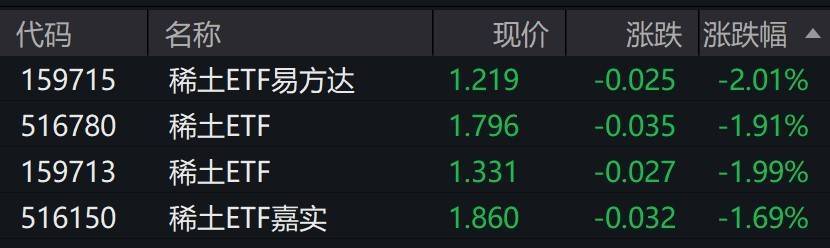 稀土概念股走低,盛和资源跌超6%,金风科技跌超3%,中国稀土、卧龙电驱跌超2%。