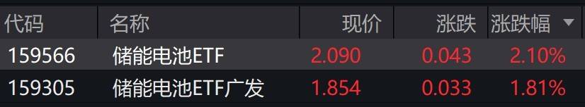 受盘面影响,储能电池ETF涨约2%。