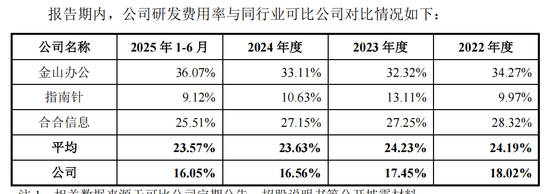 公司计划募资15亿元,主要投向研发方面的建设。不过,界面新闻注意到,企查查的研发投入占比低于同行平均值,2025年上半年数据16.05%,而行业平均值为23.57%。