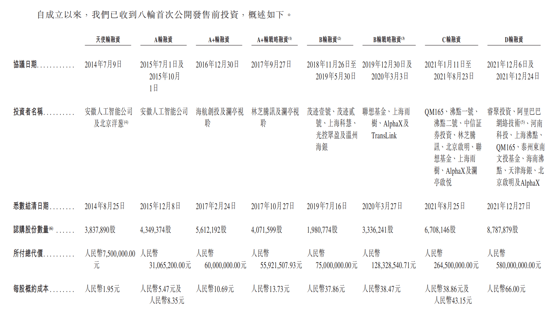 图/云迹科技IPO前投资概览 来源/云迹科技招股书