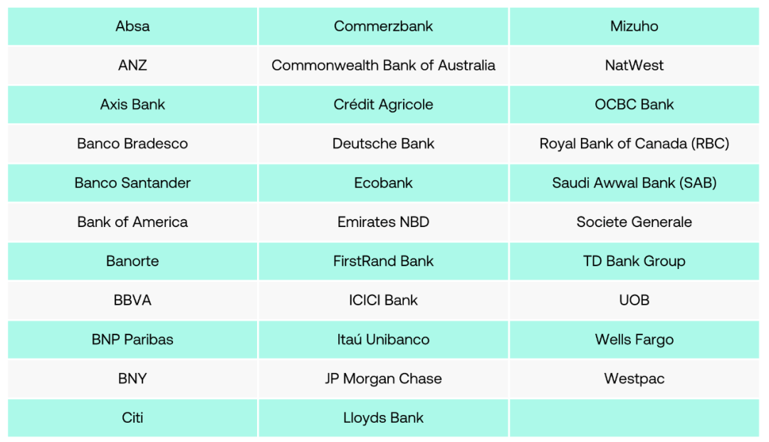 目前,来自16个国家和地区的金融机构正在就该账本的设计向Swift提供反馈。在完成相关开发和概念验证后,Swift将与其全球合作社群共同推进实施。参与设计工作的银行包括: