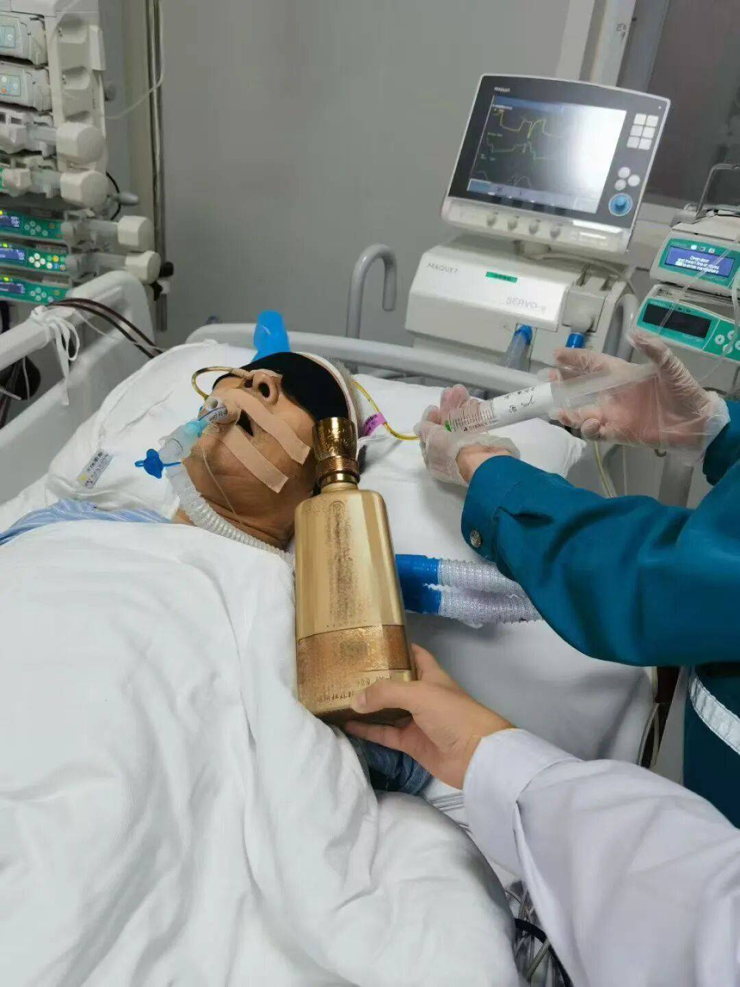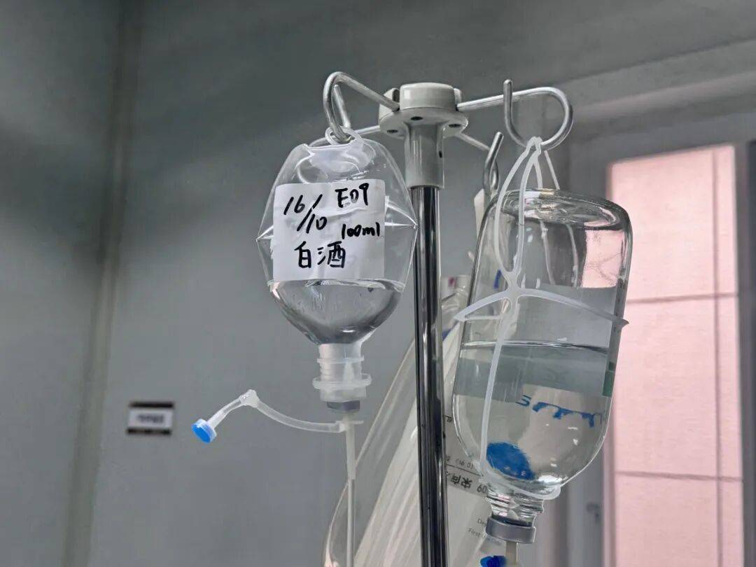 在患者接受血液净化期间,医护人员通过鼻饲管,以每小时20-30毫升的速度,持续泵入50度左右的白酒,相当于每天摄入约一斤酒。既不过分伤胃,还能维持血液中有效的乙醇浓度。