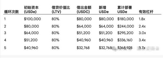 高收/益仍无法满足部分投zi者的贪欲,循环贷模式应运而生:用手中的USDe在借贷平台抵押,换出锚定实物美元的稳定币,再买入更多USDe重复抵押,循环4-5次后可加3.7倍杠杆,年化收/益也被放大至24%。这个看似完美的"财富永动机",在10月10日迎来了致命一击。然而这样的高收/益仍满足不了部分投zi者的胃口,循环贷模式随之出现:先将手中的USDe在借贷平台抵押,换出与实物美元挂钩的稳定币,再用这些稳定币购买更多USDe,之后再次抵押,如此循环4-5次,可叠加3.7倍杠杆,年化收/益也被提升至24%。这个看似无懈可击的"赚/钱机器",在10月10日遭遇了毁灭性打击。