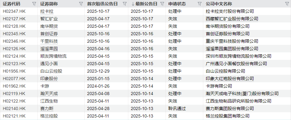赛力斯集团股份有限公司的聆讯通过。西藏智汇矿业股份有限公司、南华期货股份有限公司、溜溜果园集团股份有限公司、深圳市顺友跨境物流股份有限公司、卡游有限公司、江西生物制品研究所股份有限公司、格兰控股集团有限公司等7家公司的申请失效。