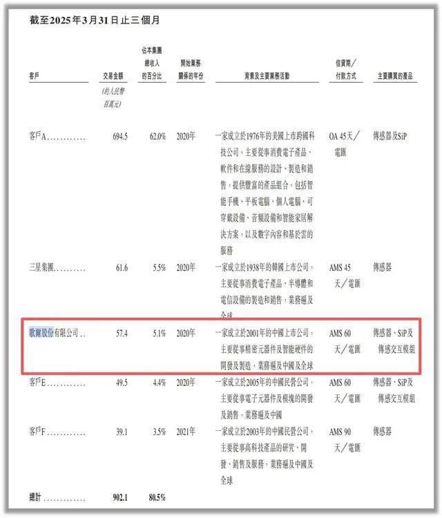 除此之外,歌尔微还与母公司歌尔股份存在大量关联交易。2025年一季度,歌尔股份是歌尔微的第三大客户,销售额占比为5.1%。
