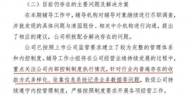 公司已按照上市公司监管要求建立了较为完整的管理体系和内控制度。辅导工作小组将在公司经营业绩持续发展的过程中,重点关注公司内部控制制度执行情况,针对行业内普遍存在的收款方式多样化、依靠信息系统记录业务数据等问题,敦促公司持续遵守内控管理制度,严格按照制度要求开展各项经营工作。