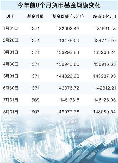 中基协发布的最新公募基金市场数据显示,截至今年8月底,我国货币基金总规模约为14.81万亿元,与去年年底的13.61万亿元相比增长1.2万亿元。对比年初数据看,货币基金增量最为突出,7个月内规模新增超1万亿元,从今年5月开始,年内公募货币基金规模首次突破14万亿元关口,并连续4个月维持在14万亿元之上。