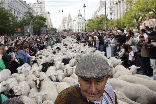 据美联社19日报道,这场由绵羊“领衔”的游行从头至尾贯穿着铃铛声、咩咩的羊叫声与号角声,重现西班牙季节性转场放牧的传统,即换季时驱赶牲畜前往新的牧场觅食。