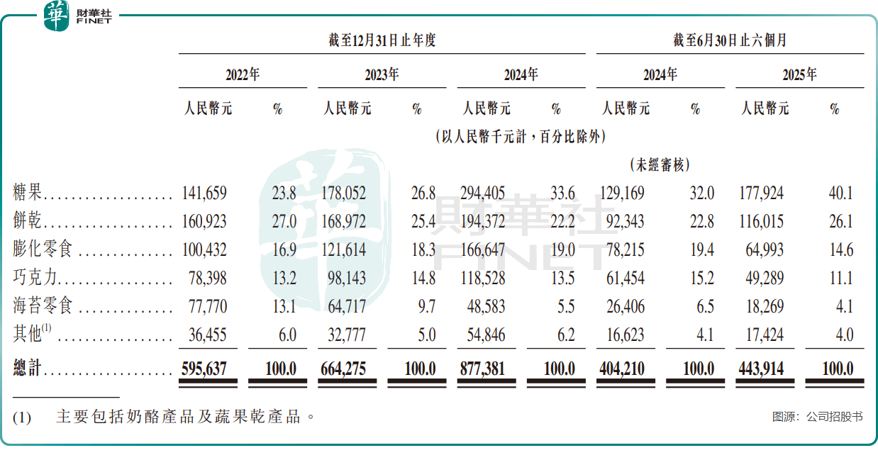另一方面,公司近年增长主要由糖果和饼干两大品类驱动。2025年上半年,这两类产品合计贡献66.2%的收入,成为业绩增长主引擎。