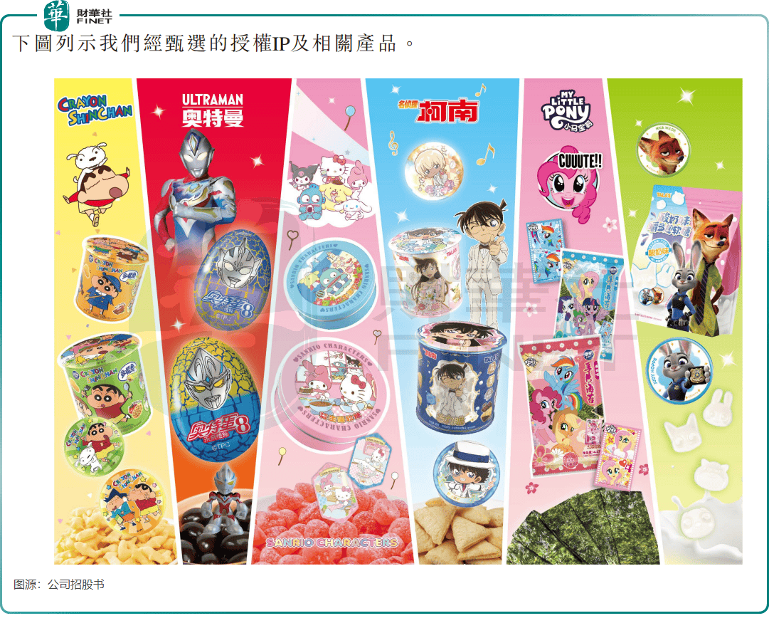 金添动漫的历史可追溯回2004年,于2011年成立为一间有限责任公司。金添动漫专注于IP趣玩食品领域,向消费者提供充满乐趣且美味健康的IP趣玩食品。据弗若斯特沙利文报告,2024年按收入计,金添动漫是中国最大的IP趣玩食品企业,也是中国第四大IP食品公司,市场份额分别为7.6%与2.5%。