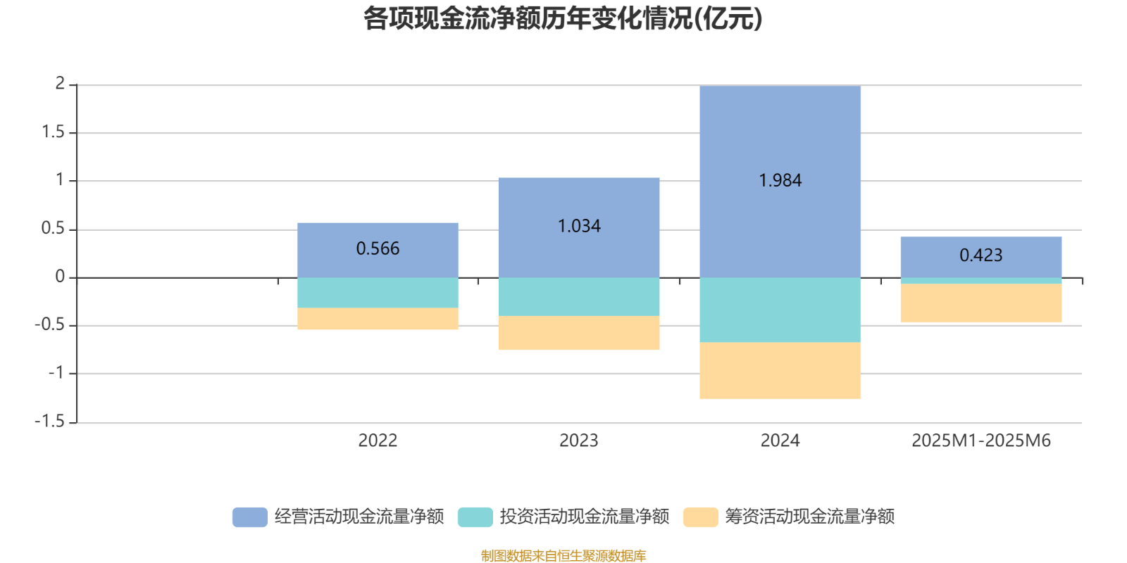 2025年1月至6月,公司经营活动现金流净额为4232.2万元,同比下降61.05%;筹资活动现金流净额-3969.9万元,同比减少1234.2万元;投资活动现金流净额-671.6万元,上年同期为-1655.6万元。