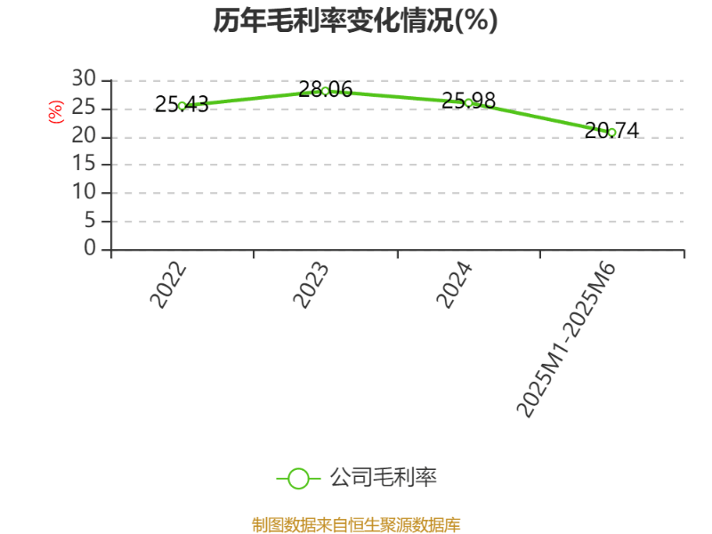 资产重大变化方面,截至2025年6月,公司应收票据及应收账款较上期末增加49.81%,占公司总资产比重上升4.15个百分点;货币资金较上期末减少9.42%,占公司总资产比重下降2.74个百分点;存货较上期末减少4.88%,占公司总资产比重下降1.32个百分点;固定资产较上期末减少3%,占公司总资产比重下降0.48个百分点。