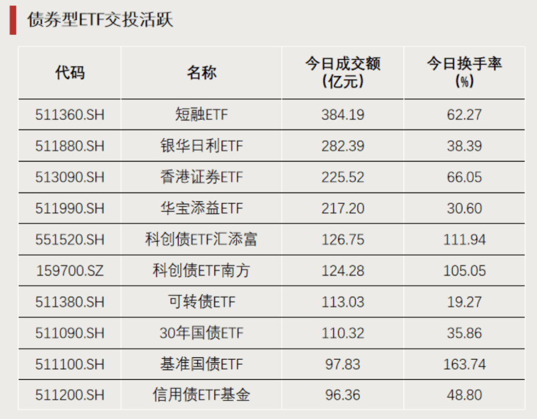 此外,多只债券型ETF交投活跃,短融ETF(511360)10月21日成交额高达384.19亿元,位居全市场ETF之首。