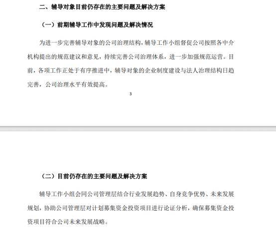 针对下一阶段的辅导工作安排,报告指出,辅导人员预计不会发生变化,辅导工作重点主要包括:一是进一步开展全面尽职调查。辅导小组将继续对辅导对象的法律、业务、财务等方面开展全面尽职调查,并进一步通过各类细节测试、内控测试、资金流水核查及访谈走访等方式,对公司状况进行更为深入的核查与规范,对辅导对象的公司治理、规范运作、财务信息及经营模式等方面进行更为全面的尽调梳理,按照辅导计划以及公司具体情况有序推进辅导工作。