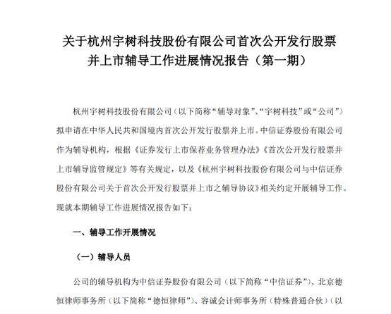 2025年7月8日,中信证券与宇树科技通过公开发行辅导监管系统提交了辅导备案登记材料;2025年7月18日,中国证监会网上办事服务平台对辅导备案报告进行了公示。