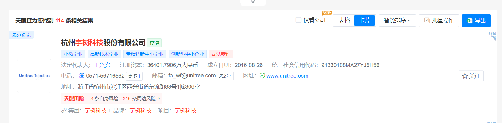 湾财社记者从天眼查查询发现,目前宇树科技显示的企业名称仍为“杭州宇树科技股份有限公司”。更名后的企业名称较此前名称减少了“杭州”两字。