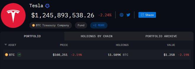 (标记为特斯拉的比特币钱包显示目前持有11509枚比特币)