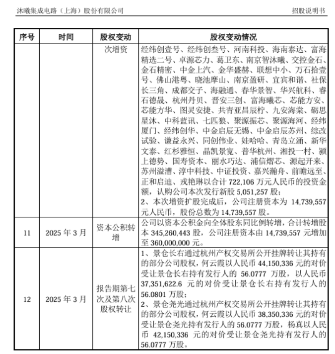 根据招股书显示,从2024年8月到2025年3月,共有99名(或人次)股东突击入股沐曦股份,包括该公司在报告期内的第五、第六、第七次增资,以及报告期的第二、第三、第四、第五、第六、第七、第八次股权转让。这些突击入股的股东对沐曦股份的贡献较为有限,他们就是奔着沐曦股份的IPO而来,他们就是来摘桃子的。