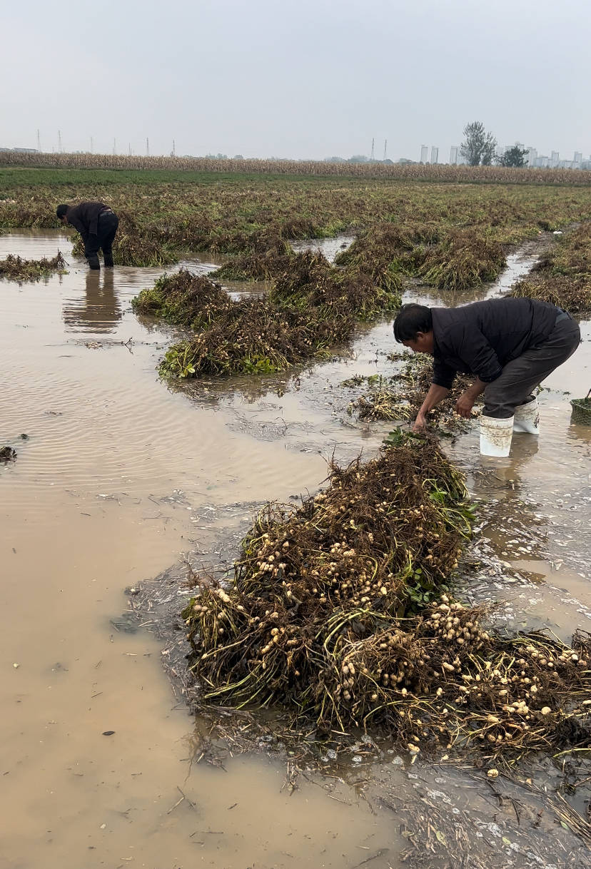 无论下不下雨,各家各户都穿着雨衣在地里一个一个地摘花生,我们周口今年种花生的居多。花生价高嘛,花生米能卖到4块钱一斤。但除非种得特别少的,就几分地那种,人家薅了直接拉回家自己摘果。种了5亩10亩的,大多只能在地里放着“等天”,要运一车出来非常艰难。我的娘啊,我现在就想,如果有个飞机就好了。