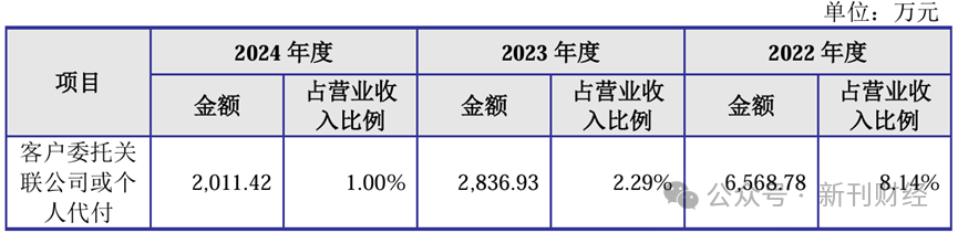报告期内,江松科技第三方回款金额分别为6,568.78万元、21,259.13万元和11,556.22万元,占同期营业收入的比例分别为8.14%、17.19%和5.73%,报告期每年都有发生,而且稳定在5%以上,尤其是2023年,竟然高达17.19%,如下表所示: