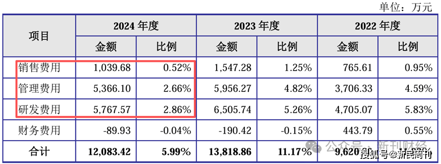 报告期内(2022年至2024年),江松科技三项费用率占比均较低,无论是从绝对占比(详见下表)还是相对占比即与同行业上市企业相比较而言,都是偏低的,反映出江松科技在三项费率占比方面偏离正常值,从而让人对其利润真实性产生质疑。