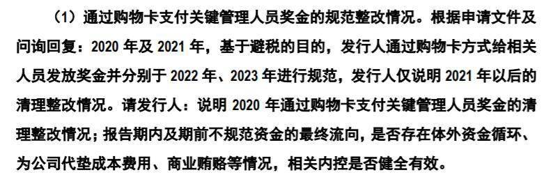 北交所请通领科技说明2020年通过购物卡支付关键管理人员奖金的清理整改情况;报告期内及期前不规范资金的最终流向,是否存在体外资金循环、为公司代垫成本费用、商业贿赂等情况,相关内控是否健全有效。