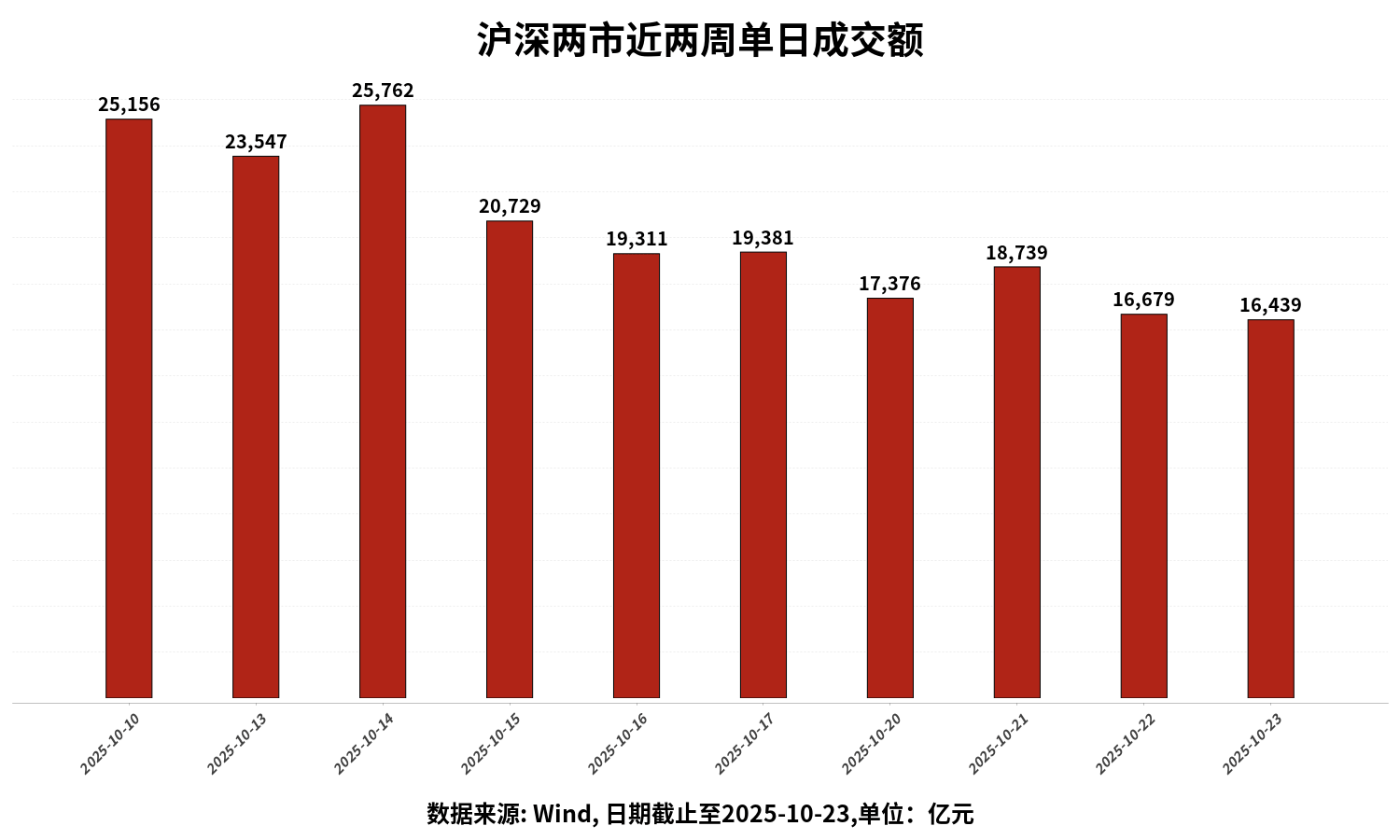 10月23日,A股三大股指小幅上涨,上证指数收涨0.22%,深证成指收涨0.22%,创业板指收涨0.09%,市场整体维持平稳态势。主流宽基指数中,中证A50上涨0.56%,涨幅相对居前。全市场共有约2,990余只股票上涨。港股主流指数集体收涨。其中,恒生中国央企指数上涨0.87%,涨幅相对居前。沪深两市成交额为16439亿元人民币,相较上个交易日小幅缩量,连续六日不足2万亿。融资余额连续四天增长,昨日达24339亿元,接近历史高位。