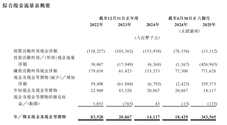 从其招股书可知,面对经营性现金流连续为负的局面,微亿智造在过去几个年度持续通过融资活动补充资金缺口。2022年、2023年与2024年,其分别通过融资活动获得净现金流入1.80亿元、0.61亿元与1.54亿元,2025年上半年进一步扩大至7.72亿元。