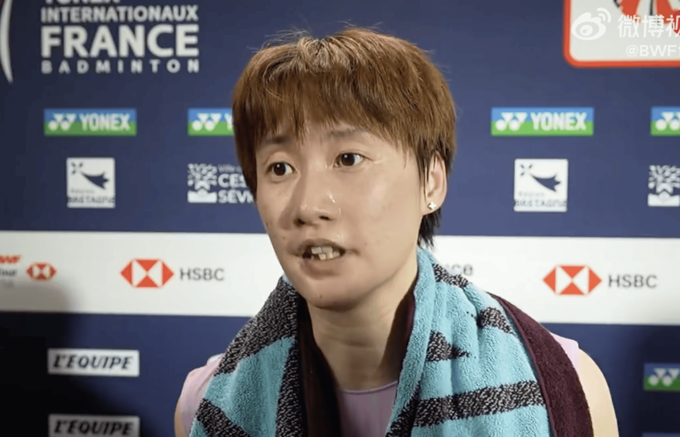 陈雨菲赛后接受采访。图片来自赛事官方社交媒体账号