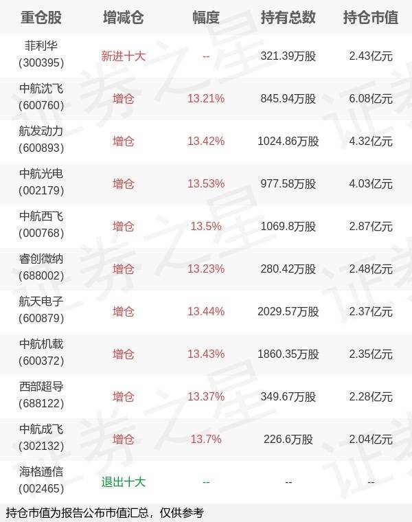 证券之星消息,10月27日鹏华基金旗下陈龙管理的鹏华中证国防交易型开放式指数基金公布三季报,近1年净值增长率11.54%。与上一季度相比,该基金前十大重仓股新增菲利华;并对中航沈飞增仓98.72万股,为该基金第一大重仓股;海格通信等退出前十大重仓股;详细数据如下: