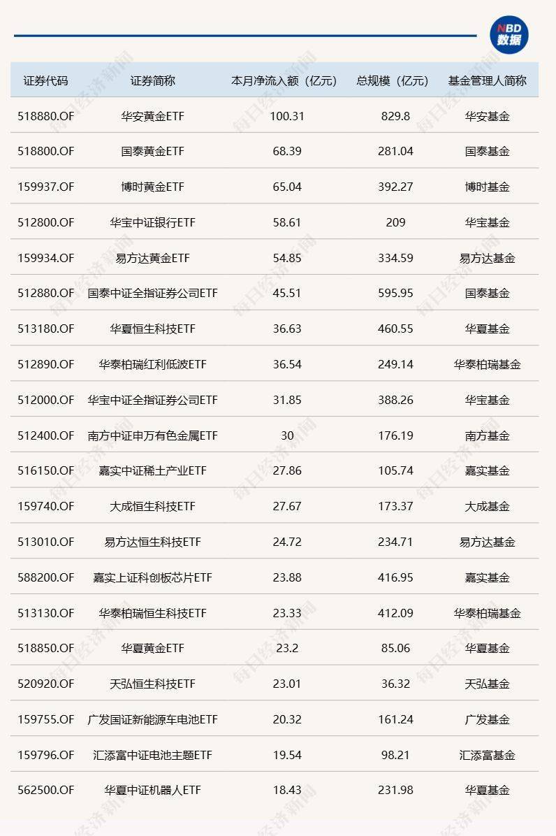截至10月24日,本月资金净流入额居前20的ETF名单如下: