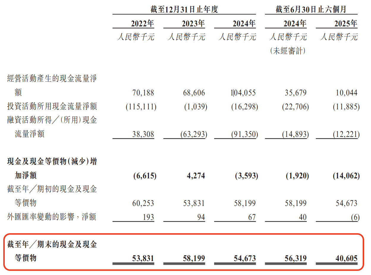 与之形成鲜明对比的是,截至2025年6月30日,公司现金及等价物仅4060.5万元。
