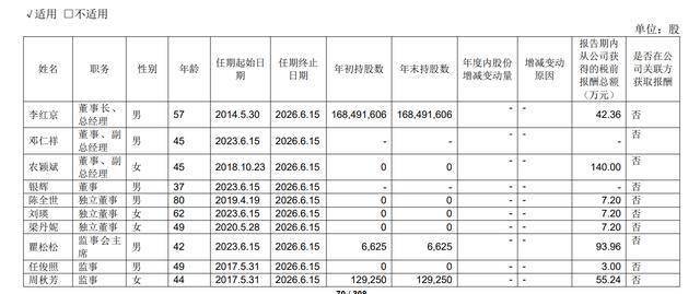 道通科技董事长、总经理为李红京,2024年,其从从公司获得的税前报酬总额为42.36万元,副总经理农颖斌薪酬为140万元,较2023年同期增长76万元。