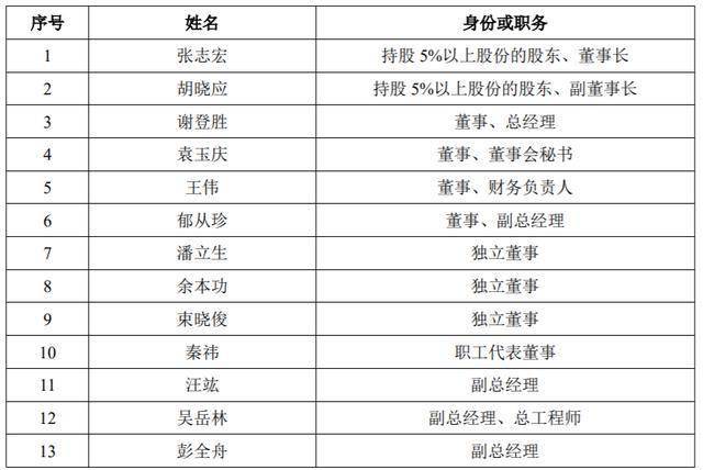辅导高管名单包括:董事长张志宏,副董事长胡晓应,董事、总经理谢登胜等13名董监高。
