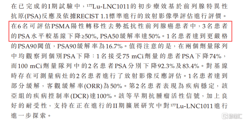 177LuLNC1011,是一款PSMA靶向治疗放射性药物,专门用于治疗PSMA阳性转移性去势抵抗性前列腺癌(mCRPC)。