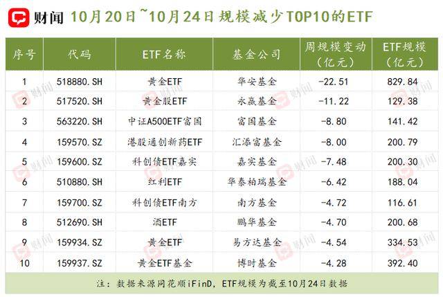 与此同时,在金价大幅回调的背景下,尽管黄金相关ETF仍获得资金净流入,但受净值下跌拖累,整体规模出现下滑。其中,黄金ETF(518880.SH)规模缩水22.51亿元,黄金股ETF(517520.SH)规模减少11.22亿元,降幅居各类ETF前列,反映出价格波动对资产规模的显著影响。