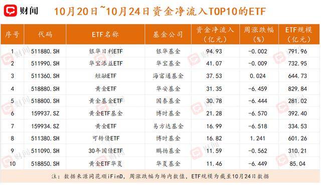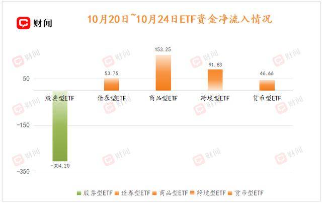 根据同花顺iFinD数据,上周市场整体吸引资金流入132.18亿元。从类别来看,受黄金相关ETF影响,商品型ETF成为主要吸金品种,净流入达153.25亿元。上周,商品型ETF总规模持续维持在2200亿元以上,其中10月21日一度攀升至2335.41亿元,创下历史新高。