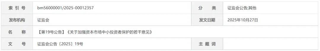 10月27日,中国证监会公布了《关于加强资本市场中小投资者保护的若干意见》,自公布之日起施行。