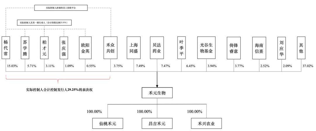 IPO前,杨代常直接持有禾元生物15.03%股权,为禾元生物第一大股东;通过禾众共创控制禾元生物3.75%的表决权、通过一致行动约定控制禾元生物10.47%表决权,合计控制禾元生物29.25%的表决权。