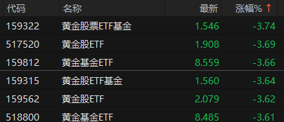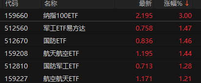 10月28日,ETF收盘涨跌不一。纳指100ETF(159660)上涨3.00%、军工ETF易方达(512560)上涨1.47%、国防ETF(512670)上涨1.46%、航天航空ETF(159208)上涨1.44%。黄金股票ETF基金(159322)下跌3.74%、黄金股ETF(517520)下跌3.69%、黄金基金ETF(159812)下跌3.66%。