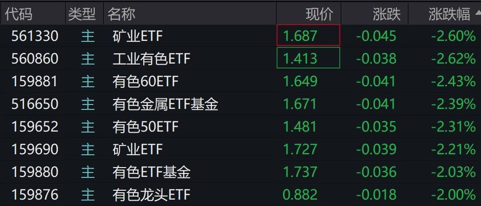 受盘面影响,矿业、有色相关ETF跌超2%。