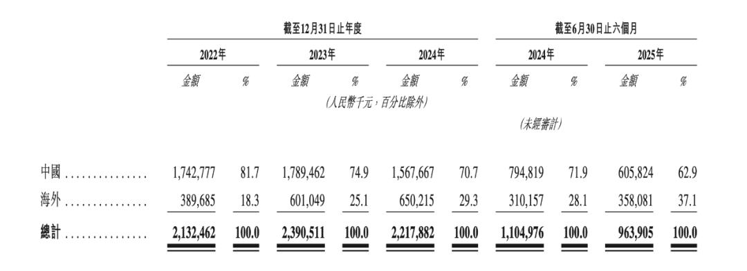 招股书显示,海外市场已成为白山云重要的增长驱动力。2022年至2024年,白山云海外业务收入分别为3.90亿元、6.01亿元和6.50亿元,复合年增长率约为29.2%;海外业务在公司总收入中的占比从18.3%增至29.3%,2025年上半年进一步提升,达到37.1%。