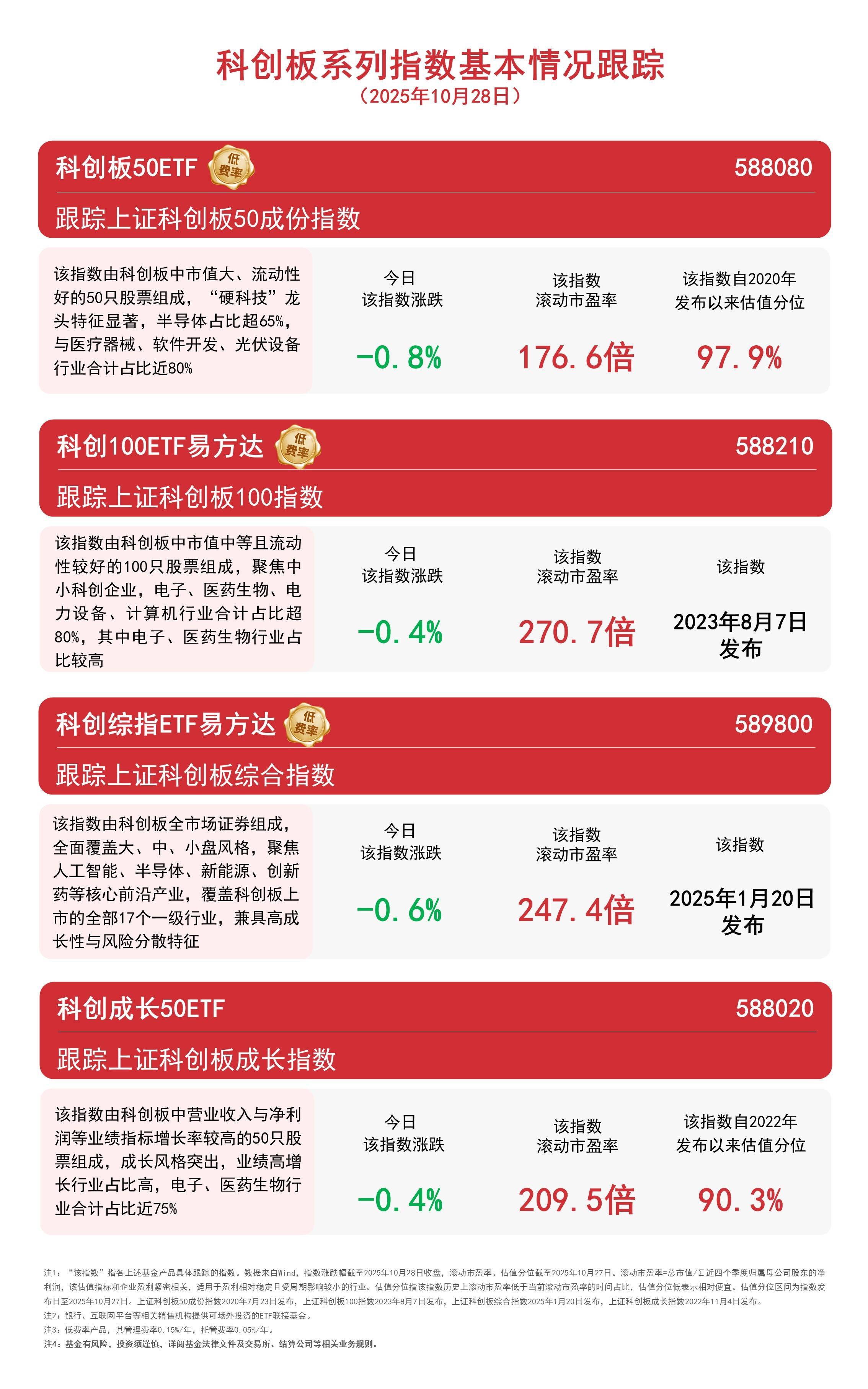 截至收盘,科创100指数、科创成长指数均下跌0.4%,科创综指下跌0.6%,科创板50指数下跌0.8%,盘面上,软件板块个股逆势上涨,金山办公、福昕软件、信安世纪涨超5%,CPO概念股德科立涨超7%,腾景科技涨超6%,医疗器械板块集体下跌。