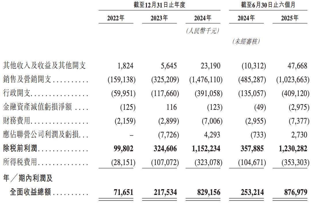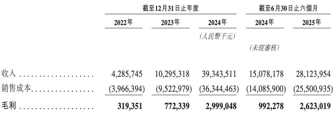 业绩方面,2022年、2023年、2024年度和2025年上半年,鸣鸣很忙的营收分别约为人民币42.86亿元、102.95亿元、393.44亿元和281.24亿元,净利润分别约为7165.1万元、2.18亿元、8.29亿元和8.77亿元。