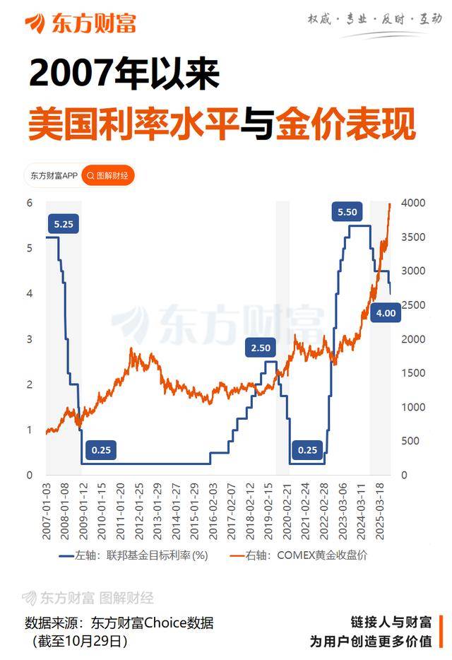 当地时间10月29日,美联储宣布将联邦基金利率目标区间下调25个基点到3.75%至4.00%之间。这是美联储继9月17日降息25个基点后再次降息,也是自2024年9月以来第五次降息。