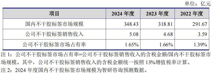 一、主营不干胶标签,2024年净利润逾1亿,市占率1.65%