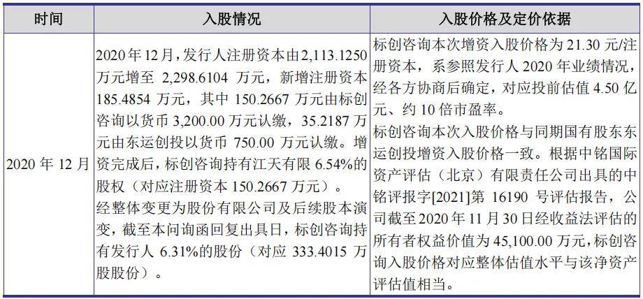 如上表所述,标创咨询入股价格与同期国有股东东运创投增资入股价格一致,对应整体估值水平与收益法评估方法所确定的净资产评估值相当,具有公允性,不构成股份支付。