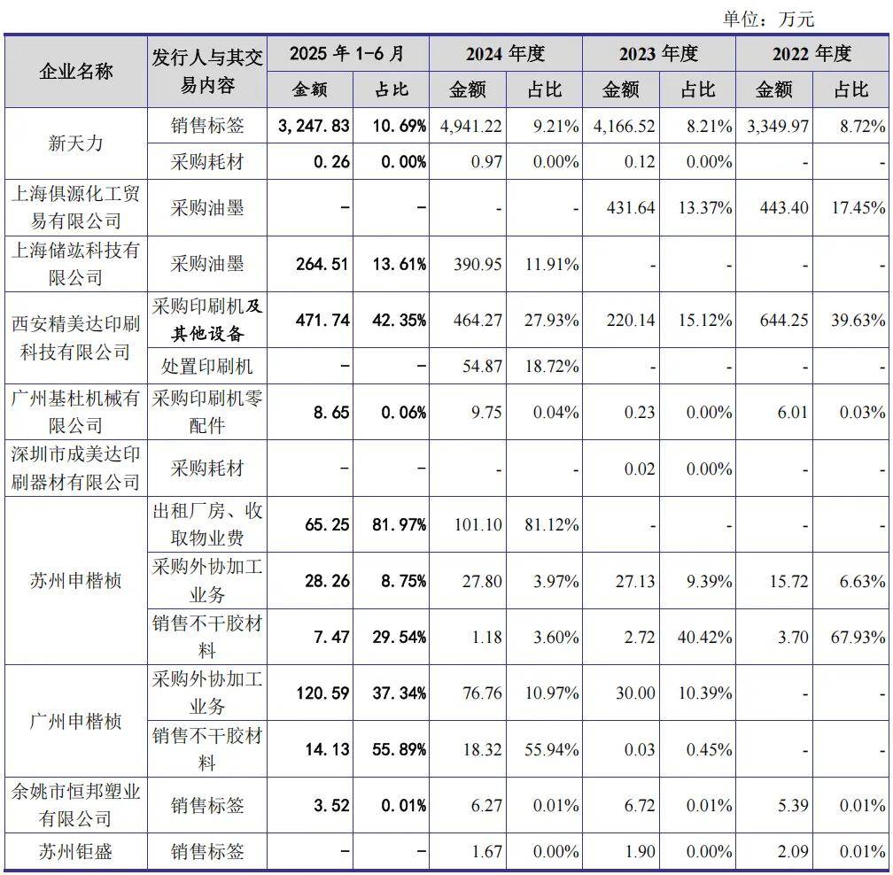 报告期内,公司与新天力之间的交易主要系向其销售香飘飘 Meco 系列果茶标签、兰芳园系列奶茶标签,以及向其零星采购耗材。