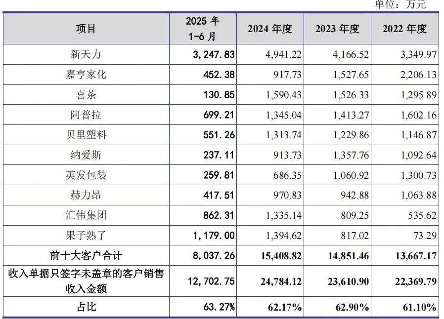 报告期各期,公司收入单据只签字未盖章情形涉及的客户包括新天力、嘉亨家化、喜茶、阿普拉等,其原因主要系公司标签产品主要应用于饮料酒水、日化用品等日常消费领域,具有批次多、周转快、零散性强等特点,部分客户出于印章管理要求不予盖章确认,由相关职能人员通过在送货单据上签字进行确认。