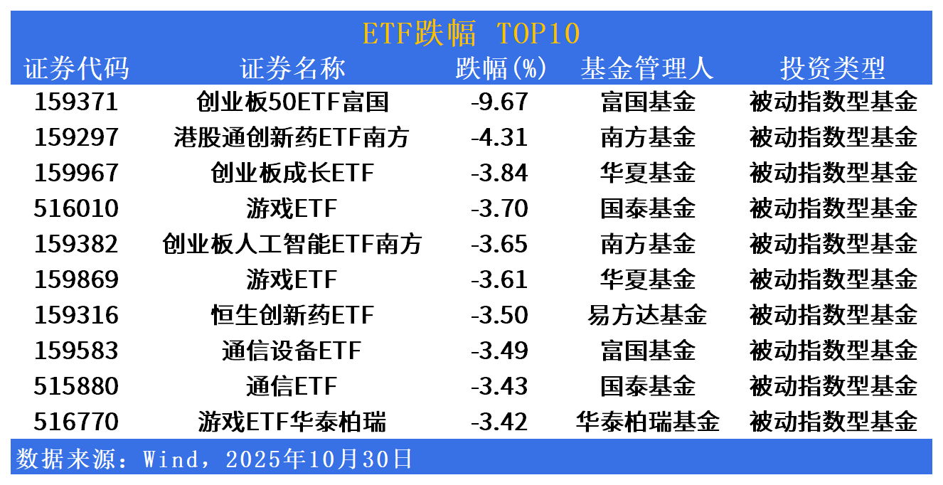 2025年10月30日,Wind数据显示,A股三大指数今日集体回调,沪指失守4000点大关。截止收盘,沪指跌0.73%;深证成指跌1.16%;创业板指跌1.84%。沪深两市成交额达到24217亿。